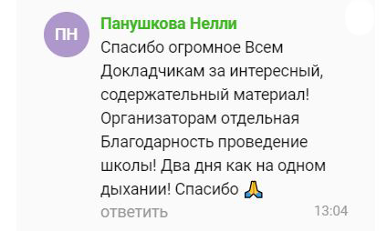Спасибо большое за прекрасные, целевые доклады. Прекрасный формат.