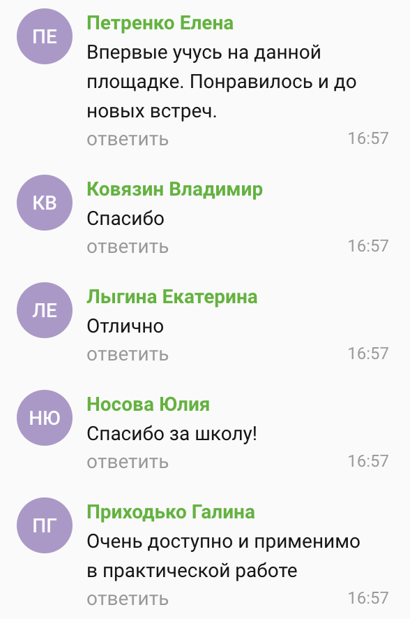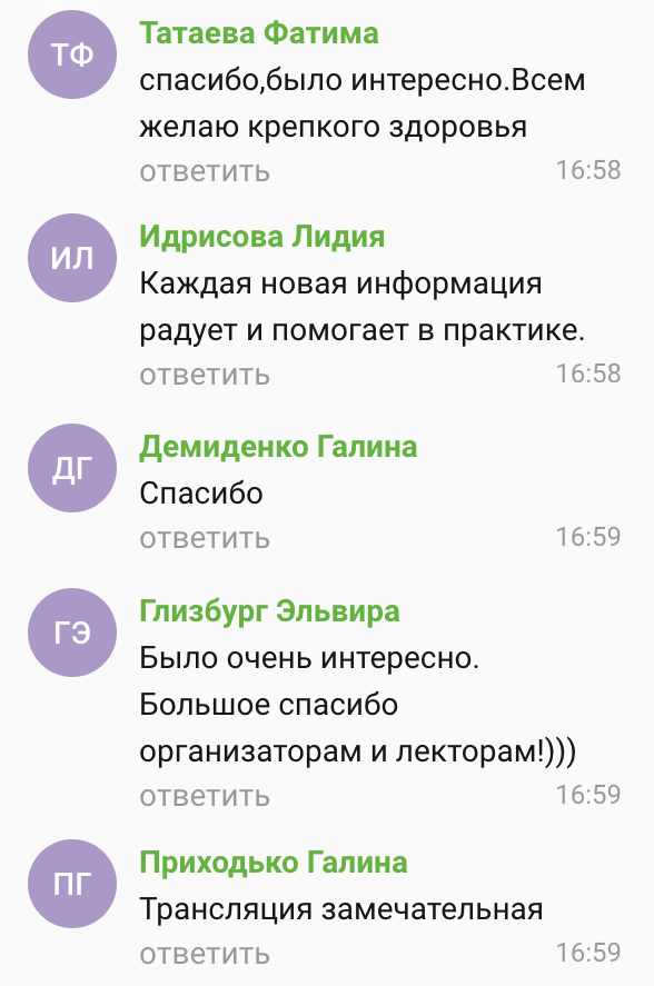 Всем огромная благодарность. Четко отлаженная работа организаторов ,администратора, прекрасные лекции.