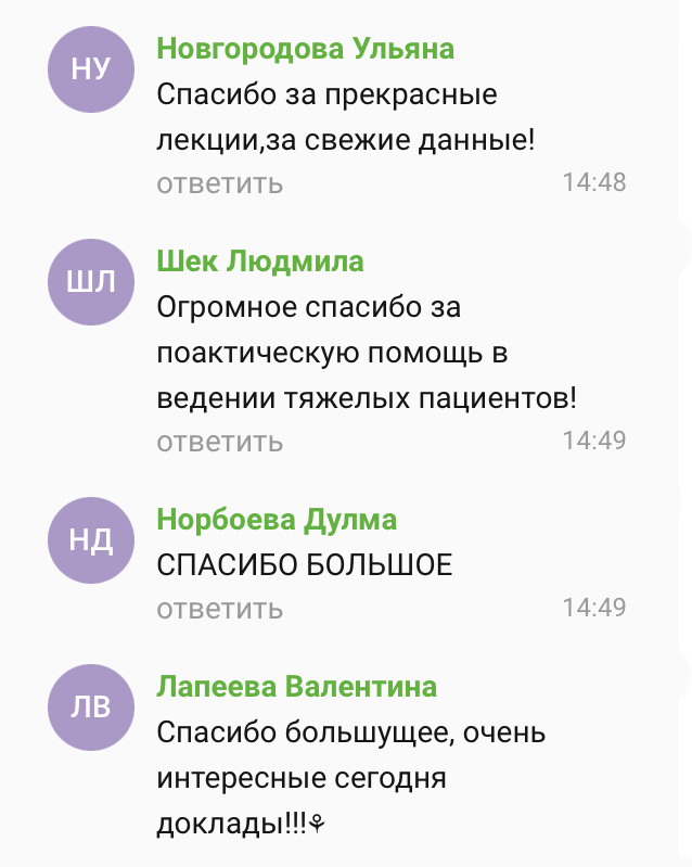 Огромное спасибо за практическую помощь в ведении тяжелых пациентов!